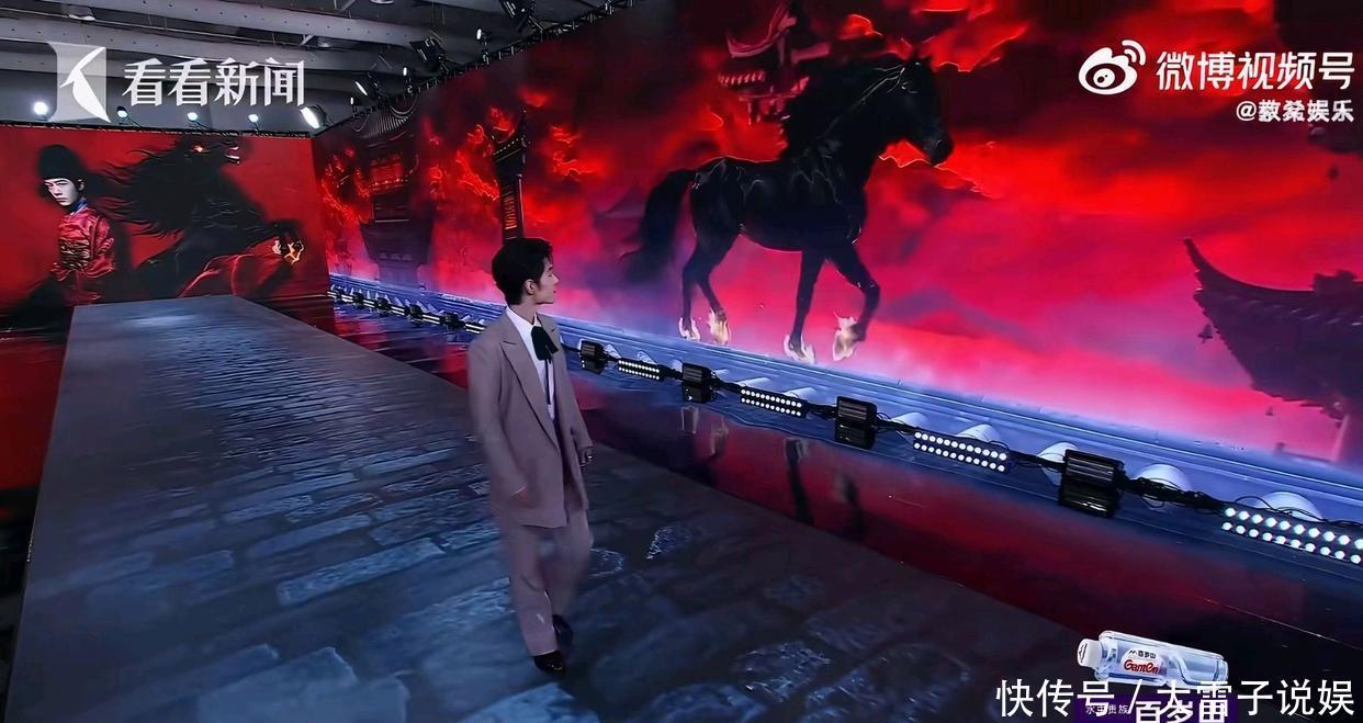 本次盛典采用AI虚实互动红毯,肖战专属特效为“马踏红焰”——一匹黑色战马在背景大屏动态行进,寓意马年驰骋、以梦为马。谁也没想到,这个科技感设计,竟造就了全网爆笑又暖心的名场面。